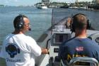 An intercom system is required for communication between crew members. Intercom systems use hard wired or wireless equipment that allows crew to board other vessels. External radio communication is usually by VHF radio. Headsets combine speakers and microphones which can also be incorporated into helmets.