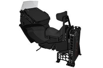 The SHOXS 9000 is designed to accommodate electronics such as multi-function displays and controls. Integrated crew system electronics are in suspension with the seated occupant to improve the man machine interface. Folding foot pegs allow choices of foot position while providing higher sightlines if desired. When specified with a rear mounted SHOXS 5105 this tandem configuration is compact and light weight. The 5505 incorporates 203mm (8") suspension travel.